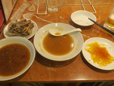 19:24 あさり炒め 注文の一品目は、まずは”あさり炒め”。 前回訪問したときに近くの席の人が美味しそうに食べてたんですよね。 そう言う記憶は忘れない。(笑) で、頼んでみました。 さっそく食べると、ピリ辛、そこそこの辛さの味付けです。 ビールのつまみにイイです。 合います。 あさり炒めを突きつつ、次のお品を考えます。 台湾ラーメンは外して、さて何にしよう。 |