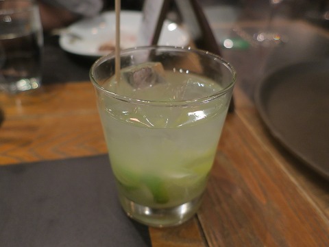 18:29 カイピリーニャ 飲物は、お薦めの”カイピリーニャ”。 ブラジルで代表的なカクテルだそう。 サトウキビを原料にした蒸留酒”カサッシャ”をライムジュースで割ったもの。 サッパリした飲み心地で、砂糖が加えられていて口当たりの良い甘味で美味しいです。 口当たりがいいので、ついついカパカパ飲んだ。 けど、アルコール度数は25°以上で、かなり酔いました。(笑)(笑) |