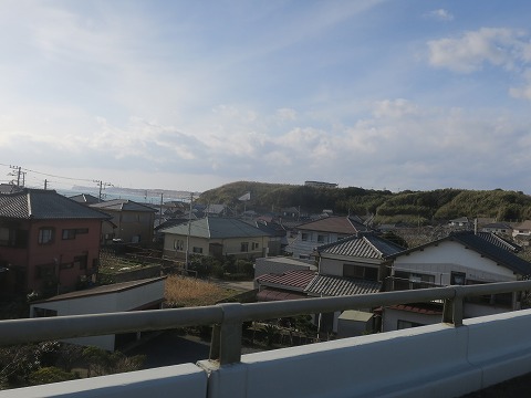 14:23 銚子ドーバーラインで 犬吠埼灯台を西に出て千葉県道286号愛宕山公園線(通称 銚子ドーバーライン)の台地の上を走ります。 この辺りの海岸沿いは、海食崖によって40~50mの高さの断崖が約10kmほど続くそうで、”屏風ヶ浦”の名称で呼ばれているそうです。 県道沿いに見えるかと思いましたが、ちょこっとだけでしたね。 通称 銚子ドーバーラインの名称は、この屏風ヶ浦が英仏海峡のドーバーに似ていることから、この愛称が付けられたそうです。 |