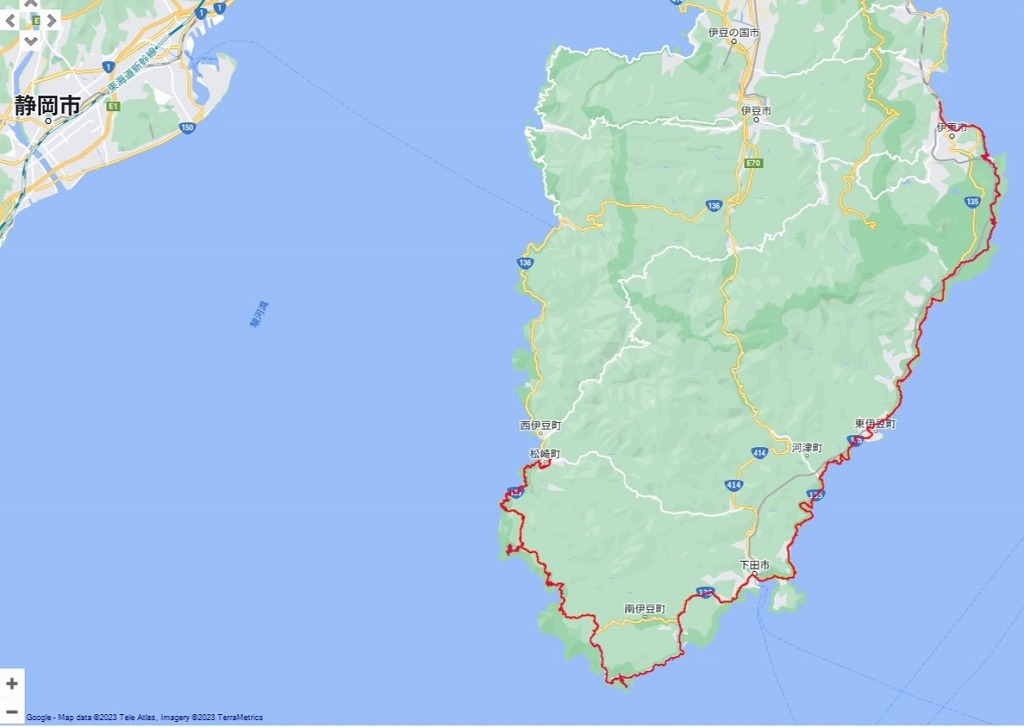 | 午後の道程 : 伊東~川奈~東伊豆町~河津町~下田~石廊崎灯台:75.8km(google map調べ) | |