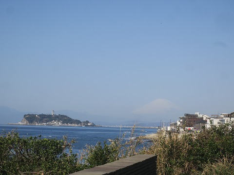 8:48 空気が春に 自宅のある横須賀を出発して西に。 葉山町の長柄(ながえ)の交差点で国道134号線に入り西走して稲村ヶ崎までやってきました。 信号で停められたタイミングで、江ノ島とボンヤリと見える富士山をデジカメに収めます。 空気が澄んでくっきりと富士山が見える冬場から、湿度が上がりボンヤリと見える様になり、春が近づいているのを感じます。 |