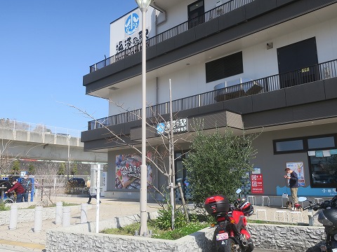 13:15 舟戸の番屋で GROMで東伊豆町から河津町へ。 今井浜のちょっと手前で、国道135号線を海側に折れて脇道へ。 ちょっと休憩で駐まったのが、”舟戸の番屋”。 こちらからは岩陰になって見えませんが、海を一望できる露天風呂があったりします。 施設の建屋では、海鮮丼が食べられたりもするので、休憩処としてもいいかもしれません。 |
