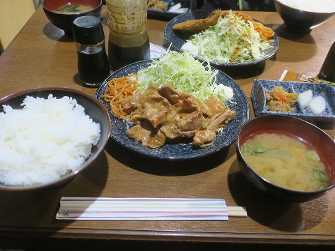 11:49 豚ニンニク焼定食 10分程待って、豚ニンニク焼定食が運ばれてきました。 料理は、660円だからって少ない訳ではなく、普通。 ご飯の盛りは、逆に多いくらいです。 それでは、「いただきます。」 うん、美味い。 普通に美味い。 後でヘルメット被ったとき、自分で自分のニンニク臭でイヤになるかな。と心配しましたが、ニンニクはそれほど前に出てなくて、美味しくいただけました。 これは間違いなく、物価高の昨今、コスパはイイですね。 |