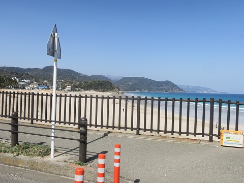 13:39 白浜を 河津町から国道135号線をさらに南下。 下田市に入り、名前のごとく白い砂で被われている伊豆白浜を通過。 石廊崎までは、あと25kmくらいかな。 |