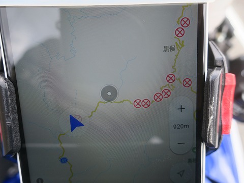 14:46 Yahoo カーナビだと 昨年の11月の時と同じ轍を踏みたくないので、こんなときはYahoo カーナビを見てみると・・・・。 「ダメじゃん。」 これから向かう右側の方は通行止めの記号ばかり。 これだけ通行止め箇所がたくさんあると、流石にバイクでも無理でしょう。 ところで、この交差点を左折した方はどこに行けるのかな? なんとなくつながっているみたいですが、チャレンジするか? 否か迷います。(笑) |