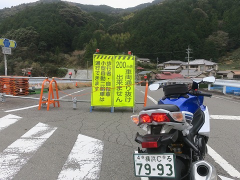 16:03 通り抜けできません 先ほどの交差点から国道362号線を南東に走ること6kmあまり、静岡SAのスマートインターにアクセスする県道207号奈良間手越線(ならま てごし せん)の交差点までやってきました。 「おっと、車両通り抜けできません。」ね。 で、よく読むと「自動二輪車は通行できます」って。 では、行ってみましょう。 注) ちなみに、このとき”小型”の文字は見落としてます。(^_^;) |