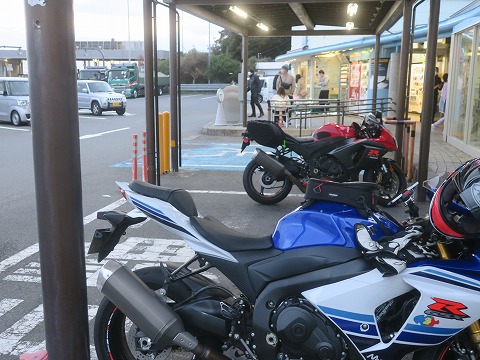 17:51 西湘パーキングで 箱根峠から国道1号線の箱根新道を下り箱根口へ。 その後、西湘バイパスに上がり、橘本線料金所に併設されている西湘パーキングまでやってきました。 また、休憩。 一応休憩。 お隣に駐まったのは、同じGSX-R1000の色違い。 めずらか。 ただでさえ希少車のGSX-R1000 が2台だけ並ぶなんてね。 初めての経験。(笑) |