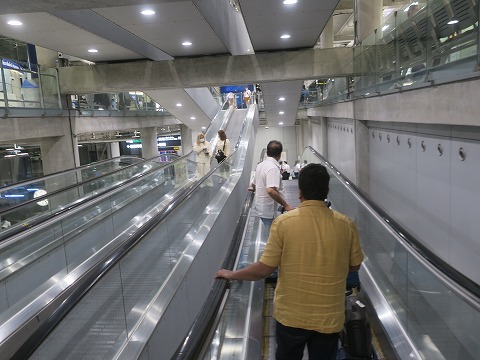4:55(現地時刻) 到着 予定時刻より20分程早く、バンコクのスワンナプーム空港に到着しました。 入国審査に向かいます。 到着前に、腕時計とデジカメの内蔵時計を2時間修正。 携帯電話は現地に着いてから電源を入れ直すと、自動的に現地の時間を表示。 便利ですね。 入国審査場は写真撮影禁止。 はるか手前から写真を撮ったら、見られてたね。 審査場まで行ったら、警察官に「deliete(消しなさい)」って言われちゃいましたよ。(笑) |