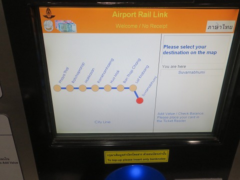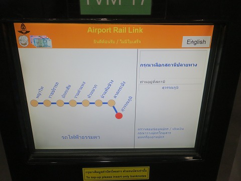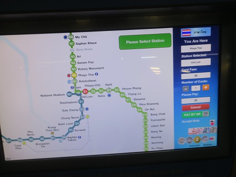 5:37 英語表記で 英語に変わったので、読める。(笑) ここで、終点の”Phaya Thai”のところを押すとチケットが買えます |