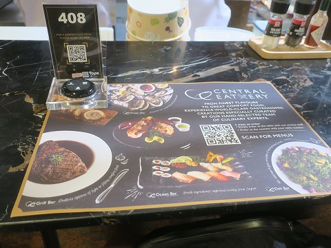 12:50 central に 訪れたのは、今朝下車したBTSのChitLom駅に接続されている”central”。 デパートって言っていいのかな。 central はタイを本拠地にベトナムとかもに展開している、大型小売店・商業地開発事業等々展開している華僑系の小売り財閥企業だそうです。 7年ぶりに訪れたら、このcentral ChitLomの隣に、より大きな”central embassy”って言う商業施設が増設されてました。 タイにある、ファミリーマートやマツモトキヨシは、このcentral グループの合弁会社だそうな。 さて、そこで昼食。 ランチョン マット(プレース マット)代わりに置かれた紙には寿司なんかも書いてあって、食べることができます。(食べないけど) |
