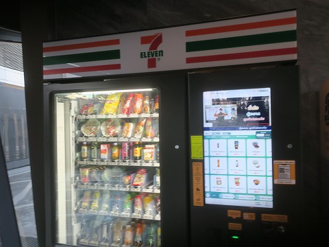 14:37 セブンイレブンの 昼食を食べたら一旦マンションに戻ります。 この自販機はマンションの入口脇に設置してあるもの。 タイの街中には、まず自販機は設置してありません。 セブンイレブン管理の自販機の様で、飲物の他にお菓子やサンドイッチ、簡単な弁当みたいなのも並んでました。 ちなみにタイでセブンイレブンを展開しているのはcpグループというタイ最大のコングロマリット(複合企業)。 ちょっと飲物とかおやつとか欲しくなったら、ここに買いにくればいいかな。 |