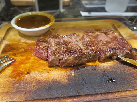 19:47 牛肉は 続いて、ステーキ。 タイって豚肉や鶏肉に比べると牛肉が美味しくないイメージがありました。 それで、今回も確認するため(?)に頼んでみました。 食べてみると「美味い!」 今までタイで食べた牛肉と比べたら断然美味しい。 「タイでも美味しい牛(牛肉)を育てる様になったんだぁ。」 と思ったらオーストラリア産でした。 逆に考えると、オージービーフを輸入しても、それに対する対価を払える人が増えた(経済力が上がった)と考えられますね。 |