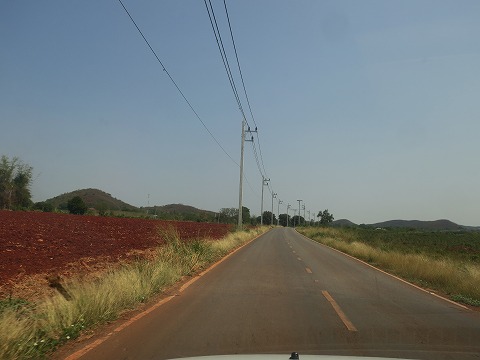 10:21 土が ホテルを出発して、畑の中の地方道を進みます。 左手の畑。 まだ、何も植えてなくて耕した状態ですが、土が赤いですね。 真っ赤っか。 写真で見るよりもっと赤く感じます。 肥沃なんでしょうね。 |