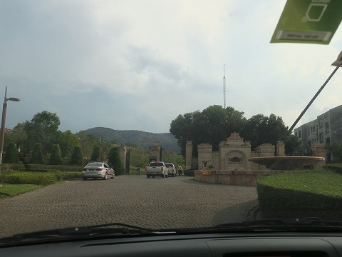 16:06 TOSCANA VALLEY は 入口にゲートがあって、不用の人は入れないようです。 ちょっと脇にクルマを駐めて、嫁さんは中に入る手段を調べます。 TOSCANA VALLEY は高級住宅街(別荘地)とホテル、ゴルフコースや飲食店が一体となって開発されたリゾート地の様です。 名前のTOSCANAからもわかるように、全体的にイタリアのトスカーナ地方をイメージしてデザインされているようです。 嫁さんの話だと、別荘地と言うより仕事でたまにバンコクに行けば用事が済むような富裕層が多く住んでいるそうです。 なので、セキュリティーのため、不用な人は中に入れません。 |