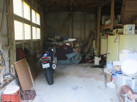 16:57 倉庫の一角に 入口前の駐車場にバイクを停めて、バイクの置場を確認すると、移動してください。とのこと。 案内されたのは、道路から一段下がった場所にある倉庫らしい建物。 その中に駐めてください。 と言うことで、倉庫の一角にバイクを駐めます。 置いてあるものを見ると、漁具類がたくさん置いてありました。 おそらく、以前は漁業を営んでいたようです。 この屋根付きの建物の中であれば、雨風や夜露がしのげますね。 助かります。 |