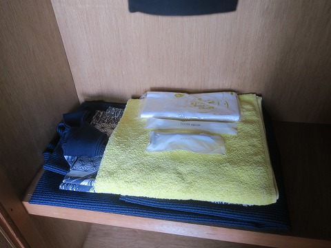 17:04 一通り アメニティ。(笑) 旅館としてj標準的な品揃えで、浴衣にバスタオル、手ぬぐいに歯ブラシセット、そしてひげ剃りもありました。 風呂は、部屋にもありますが、大風呂があります。 大風呂は温泉で、循環式でした。 今日泊まっているのは、4組5名ほどだったこともあり、大風呂は一人貸切状態でした。 |