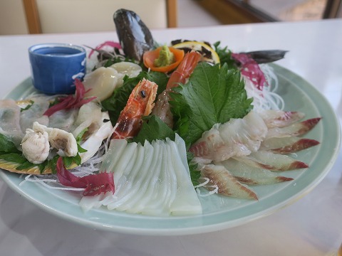 18:33 刺し盛りは お刺身の盛り合わせは、グレ、コウイカ、フグ、ホタテにエビとかだったかな。 贅沢~。 尾頭付きの魚はグレ。 関東だとメジナの名前で知られています。 お一人様なので、お一人様分だと思いますが、量がたっぷり。 嬉しくなります。 |