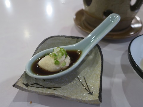 18:53 ワンスプーンで レンゲにワンスプーン料理として供されたのは、フグの白子ポン酢。 今年は正月にフグを食べられなかったので、お初。 やっぱりフグの白子は美味い。 |