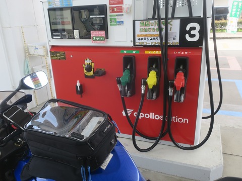 9:18 ガソリンを給油 その前に、ガソリンを給油します。 結局、昨日は途中で一回給油しただけでした。 昨日の夕方ガソリンを給油しなかったので、ほぼほぼタンクは空の状態、燃料ランプが点滅を始めていました。 給油したのは出雲市内の国道9号線近くのapollo station。 |