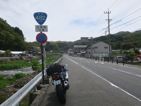 11:00 国道482号線へ 米子から国道181号線を南下すること20km強、日野郡江府町で国道482号線との交差点までやってきました。 本日のツーリングのメインルートはこれ、国道482号線。 昨日は国道やら県道やら林道を細かくつないでツーリング ルートにしましたが、今日はここから先は国道482号線でほぼ京丹後までたどり着けます。 地図を見る必要が少ないので、走りに集中できます。 |