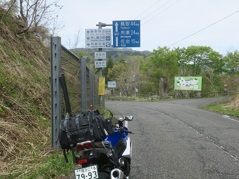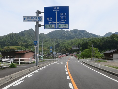 11:41 ふたたび鳥取県 先ほどの交差点から国道313号線との重複区間から国道482号線の単独区間に入り東進すること8km弱、ふたたび岡山県から鳥取県に戻りました。 ここまでの国道482号線はセンターラインのある片側1車線の対面通行の国道です。 ある程度アップダウンはあるものの、急傾斜な区間はほとんどありません。 曲がりの浅い低〜中速カーブを主体に直線でつないだ様な路線で、ロングツーリングで走るのに快適です。 交通量は少ないです。 |