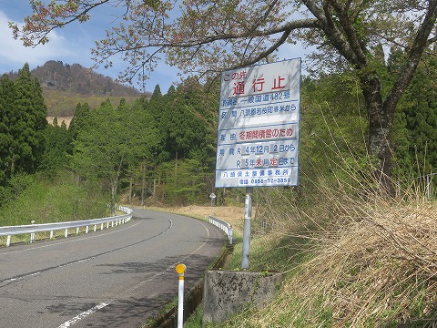 理由は”冬期間積雪のため”ってあるけど、もう全然雪の気配もないよ。