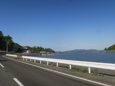 右手に見えているのは、久美浜湾。