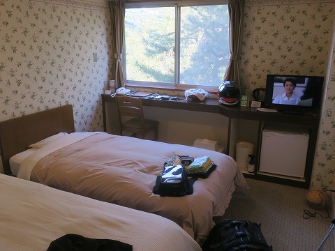19:16 部屋に戻る 食事を終えて部屋に戻ります。 部屋で明日のルートを検討します。 今回のツーリング、明日の29日(土)が最終日です。 離職中で時間があるので、延長してもいいんですが、明日から天気が悪くなる予報なので。 明日の日中はどうにか天気が保ちそうなので、雨に降られないよう早めに引き上げる予定です。 |
