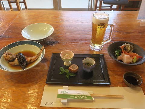 18:03 夕食の時間です。 ゆっくりと温泉で温まったら、6時半から夕食です。 夕食は食堂で。 今日の宿は生ビールがありました。 嬉しい。 (^o^)v ここの宿ですが、宿泊の他に、日帰りの温泉施設と大広間があって宴会が出来る様になっています。 こんな造りなので、給仕の人に確認したら、やはり公共(京丹後市)の施設でした。 場所が丹後庁舎の真ん前ですもんね。 京丹後市に合併する以前の丹後町だったころは、ここは丹後町の宴会場みたいな立ち位置で作ったんじゃないかな。 |