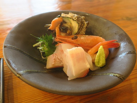 18:04 お造り五種盛り テーブルの上には、今日の料理のお品書きがありました。 によると、お造り五種盛り。 甘エビとサザエ、イカにタイと、ブリでした。 ブリは「今時分にブリ?」と思ったので、覚えていました。 サザエはコリコリで、久しぶりに食べて美味しかったです。 昨日はカニがありましたが、今日はなし。 他に宿泊している人が、別注でカニを食べてましたね。 ここはしうど荘では、ここのブランドガニの間人(たいざ)ガニが食べられるそうです。 他のお客さんが食べていたのが、間人ガニかは知りませんが。 |