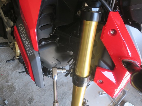 10:01 昨日の続き フロントフォークのオイル交換作業の続きです。 昨日、フォークオイルをこれまでより柔らかいKYB社製のG20Sに入れ替えて、エアー抜きのため、1晩放置しておきました。 |