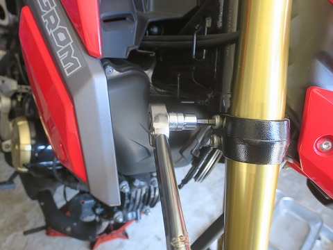 11:12 トップブリッジ側を キャップボルトを締め付けたら、フロント フォークを数回ストロークさせてフォークのねじれを取ってやったら、トップブリッジ側はピンチ ボルトをトルクレンチで締め付けます。 これでフロント フォークの取付けは完了。 後は、作業で不要だった不器類を戻していきます。 |