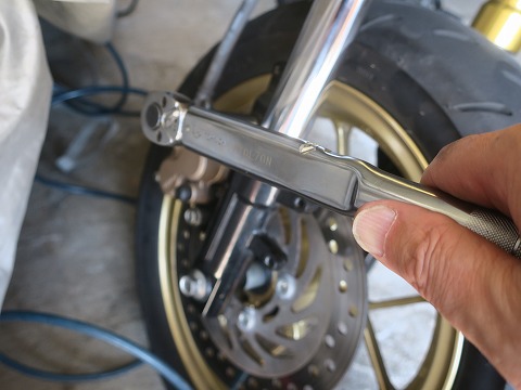 11:05 トルクが低い 三つ叉のピンチボルトを締め付けたら、フォークのアウターが供回りしなくなるので、キャップボルトをトルクレンチを使って規定値で締め付け。 このトルクがね。 締め付けるトルクが低いです。 力任せに締め付けると、ネジを舐めてしまうので、トルクレンチは必須ですね。 自分はついつい締め過ぎちゃうんで、トルクレンチが無いと恐いです。 |