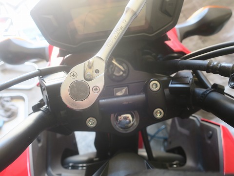 11:00 規定トルクで 三つ叉のピンチ ボルトをトルクレンチを使って規定トルクで締め付けます。 |