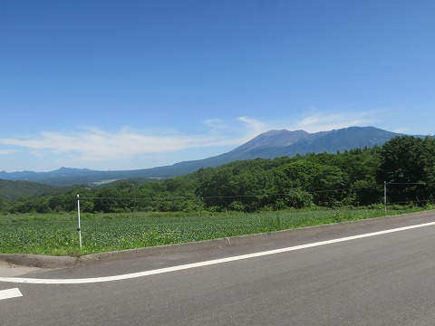 13:28 浅間山が パノラマラインの北上を続けると、左後ろに浅間山の北麓が広がります。 景色よろし。 北海道チックな景色をイメージできます。 |