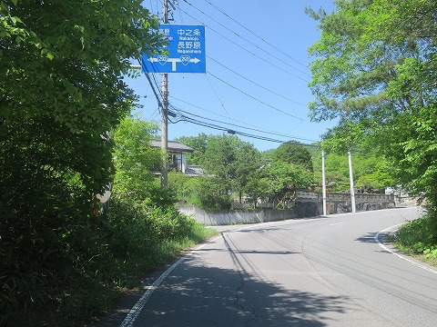13:34 T字路で パノラマラインの北上を続けると、T字路に突き当たります。 パノラマラインはこのT字路を右折になります。 左折するとバラギ湖やキャンプ場などが整備されているバラギ高原へと接続します。 |