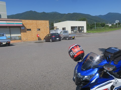 15:22 宿に向かう 宿に入る前に、ちょっと先まで行ってコンビニで駐まります。 とりあえず缶コーヒーとか水を買って、宿に入ります。 ここで再度スマホのナビに宿を登録。 今度は標高の高い涼しいところを走ってきた直後でしたので熱暴走してませんでした。 ルート案内で宿に向かいます。 |