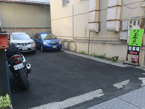 15:45 駐車場に駐める 駐車場は旅館から20mほど離れた場所にありました。 旅館の人に確認して、バイクを壁際に駐めます。 それでは、荷物を解いて、チェックインすることにしましょう。 |