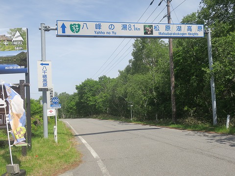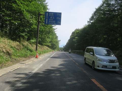 14:05 長野県道480号松原湖高原線(まつばらこ こうげん せん)で レストハウスふるさとで休憩した後、その脇からスタートする県道480号松原湖高原線に入り、標高を下げて国道141号線を目指します。 |