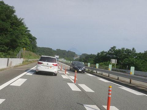 15:41 韮崎の手前で 中央高速道路に上がり八王子方面に向けて東進します。 途中、韮崎 ICの手前で下り車線を通行止めにして対面通行。 でした。(ーー;) 昨日、走ってきたときに思ったんですよね。 渋滞してたんで、「帰りは迂回しよう。」 って。 すっかり忘れてました。 一番時間が短縮できる区間なのにね。 片側1車線の対面通行にして、規制の前から渋滞してました。 「失敗、失敗。」 (-_-;) |