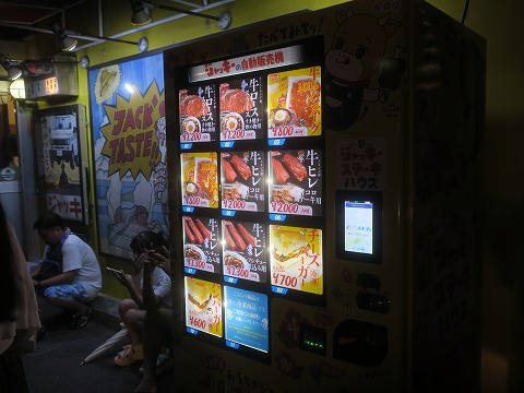 19:49 生肉の自動販売機(冷凍) 店の入口脇にある自動販売機。 生の牛ロースとか牛ヒレにハンバーグ、ハンバーガー、チーズバーガーを販売していました。 生肉ですよ生。 冷凍ですけどね。 生肉の自動販売機なんて始めて見ましたよ。(笑) |