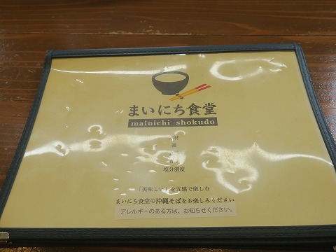 12:54 今日の昼食は 訪れたのは、先ほどの”ソーキそば屋 田舎”から3kmほどの距離にある”まいにち食堂”。 沖縄そばの専門店です。 お昼時と言うことで、混んでましたが、どうにか窓際の席に滑り込むことができました。 お店は、県道から少し入ったところにあるマンションの1階で、知らなければ通り過ぎてしまうような場所にありました。 |