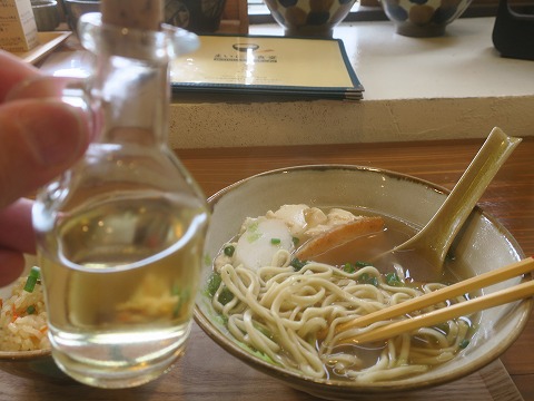 13:04 コーレーグースを ちょっと食べたら、味変でテーブルに置いてある”コーレーグース”をちょい足し。 コーレーグースは島トウガラシを泡盛に漬け込んだ沖縄の調味料。 辛いよ。 これを入れると、味が引き締まります。 |