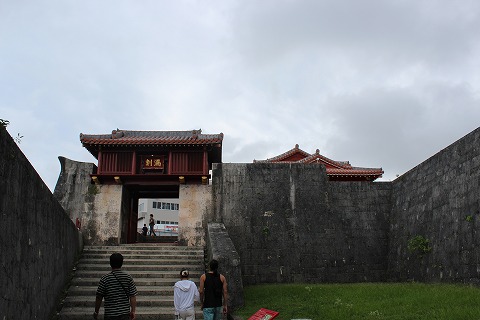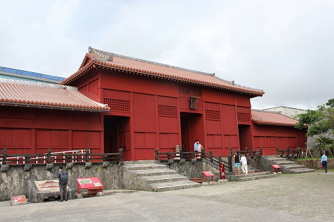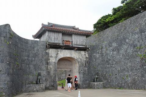 14:43 園比屋武御嶽石門(そのひゃんうたきいしもん) 歓会門の手前、横にあった”園比屋武御嶽石門”。(読みづらい) 1519年に建てられたらしく、第二次世界大戦では一部が破壊されたそうですが、復元。 2000年に世界遺産に登録されたそうです。 |