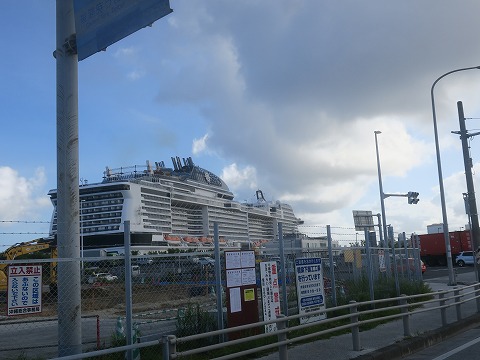 8:31 クルージング ターミナルに ホテルを出発しても、美ら海水族館までのメインの道路になる国道58号線は走りません。 まずは1本海側のルート。 西海岸道路って言うのかな。 混雑する国道58号線の抜け道的なルートになっているみたいです。 しばらく走ると、左手に巨大なマンション? って思ってよく見たらクルージング船でした。 「デカいなぁ。」 那覇クルージング ターミナルに停泊してました。 あまりの大きさで、もはや船って感じじゃないですね。 |