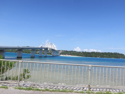 10:52 みるみる乾く しばらく走ったら、にわか雨は止みました。 雨に濡れた上着も、みるみるうちに乾きます。 国道449号線を名護市から本部町に入り北上を続けています。 左手に見えるのは背底島(せそこ しま)とそれに架かる瀬底大橋。 暑い。 水に入りたくなりますね。 |