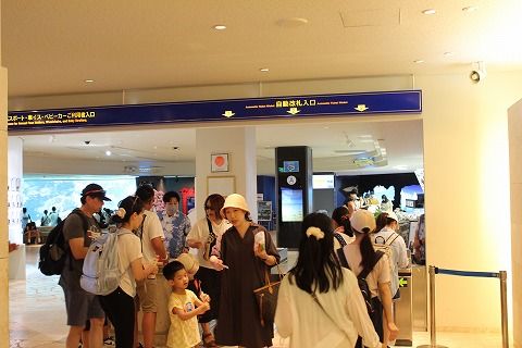 13:32 お昼を食べに お昼を食べていないので、正面に見える美ら海水族館の建物に戻ります。 先週末梅雨明けした沖縄は、日差し全開。 炎天下を歩いたら、あちいったらありゃしません。 |