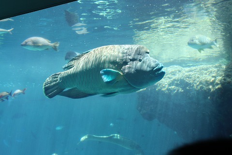 11:31 ナポレオンフィッシュも ナポレオンフィッシュもいる。 (体長)2mくらい? デカいね。 和名”メガネモチノウオ”って言うベラ科の魚だそうで。 白身の魚で食べると美味しいらしい。(笑) |