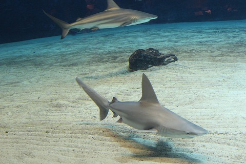 11:58 他のサメも 他のサメもいます。 水槽は別だけどね。 ジンベエザメにケガでもさせたら大変だからね。(笑) |