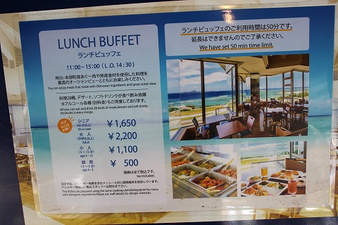 13:35 レストランは 美ら海水族館の建物内にあるレストランまでやってきました。 レストランはブッフェ形式なんですね。 お値段は、「2,200円かぁ〜。」 ちと高いな。 シニアなら1,650円だけど、まだシニア(65歳以上)じゃないし・・・。 ( ̄。 ̄;) それに、イルカのショーが終わったタイミングなのでちょっと混んでます。 止めておこう。 ほかを探します。 |